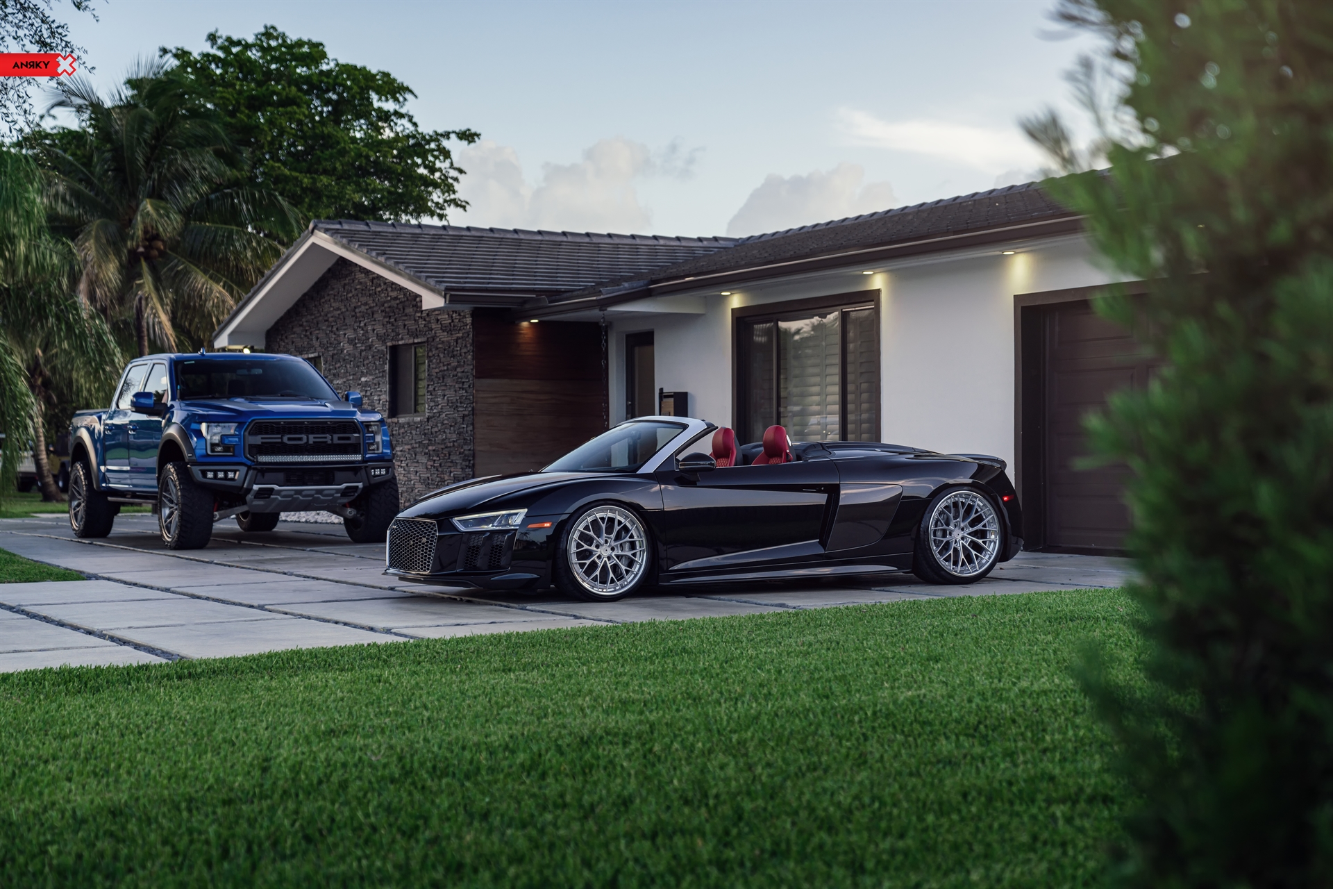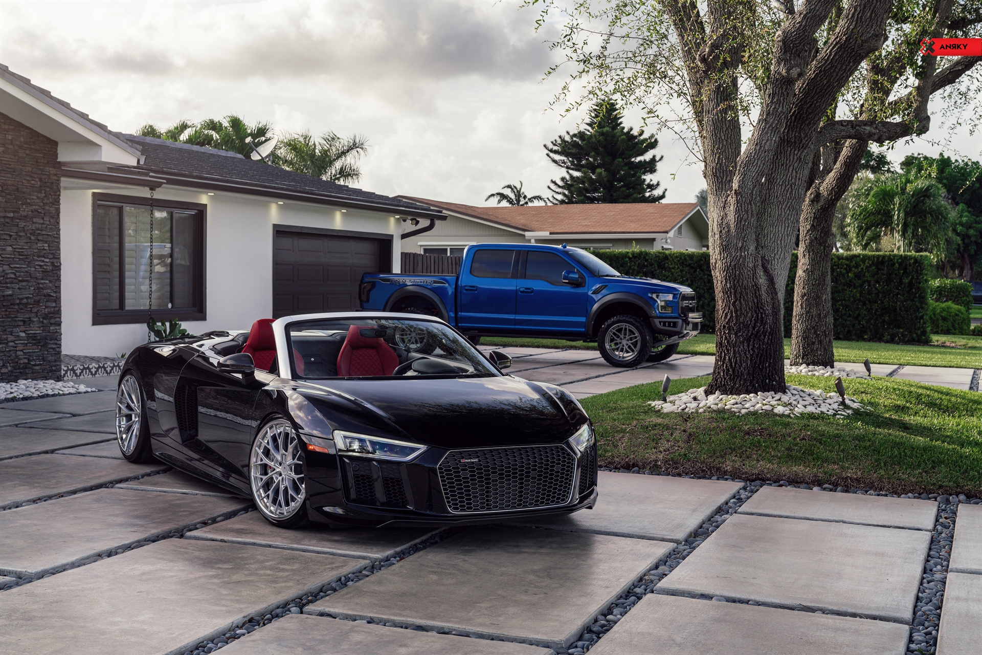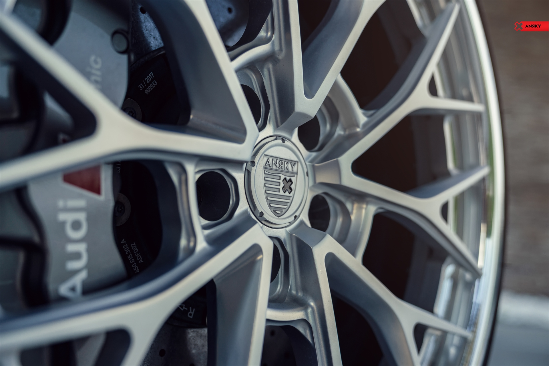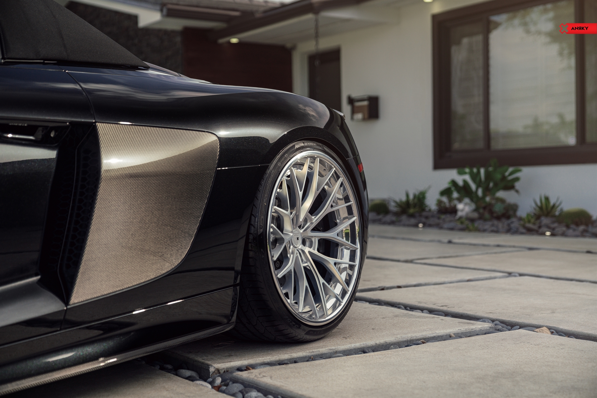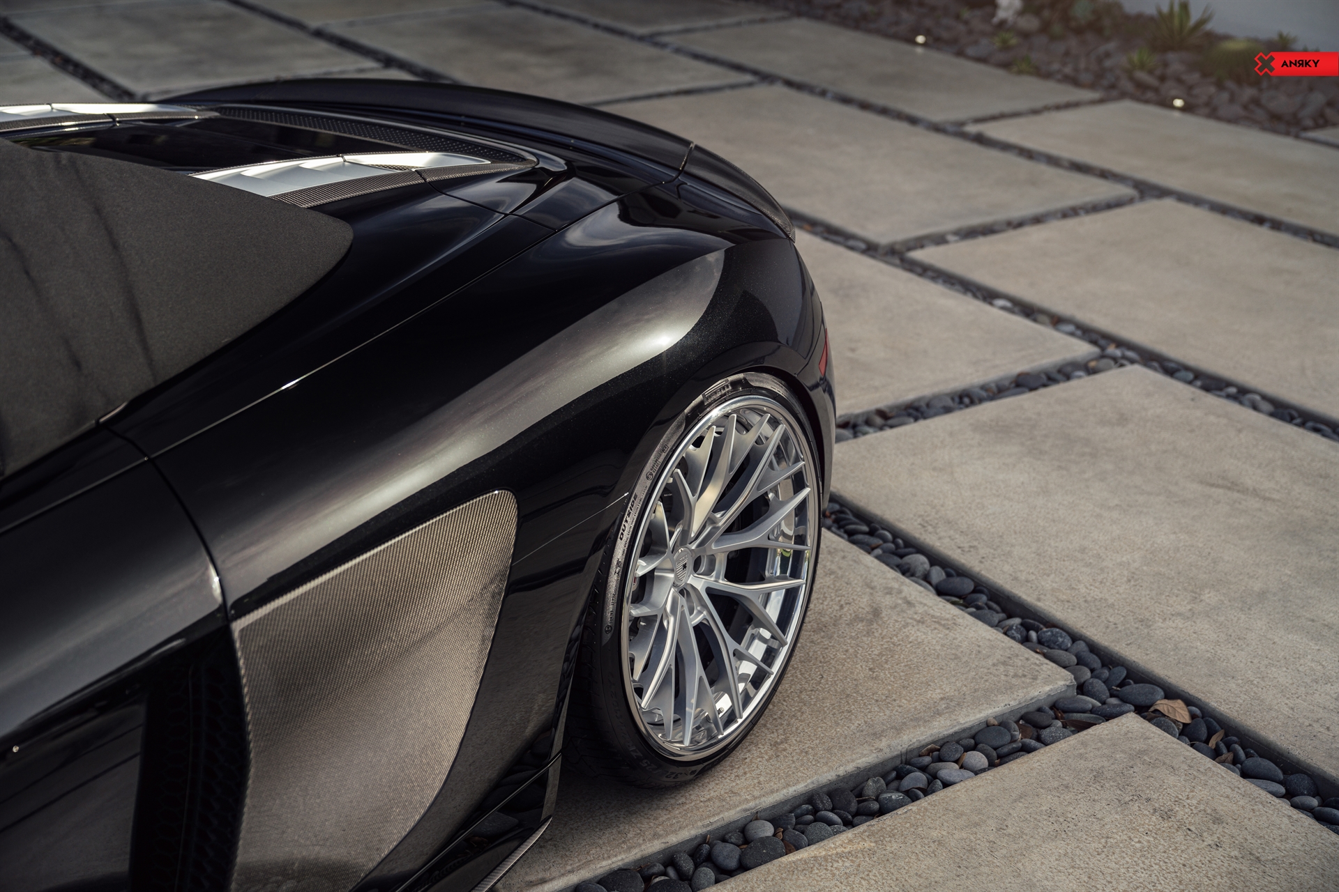 Audi R8 V10 Plus AN30 SeriesTHREE 20×9 21×12.5 Mirror Polished Satin Clear Center Mirror Polished Clear Lip Mirror Polished Clear Inner Hidden ARP Hardware Black ANRKY ‘X’ on cap Shop: Wheels Boutique