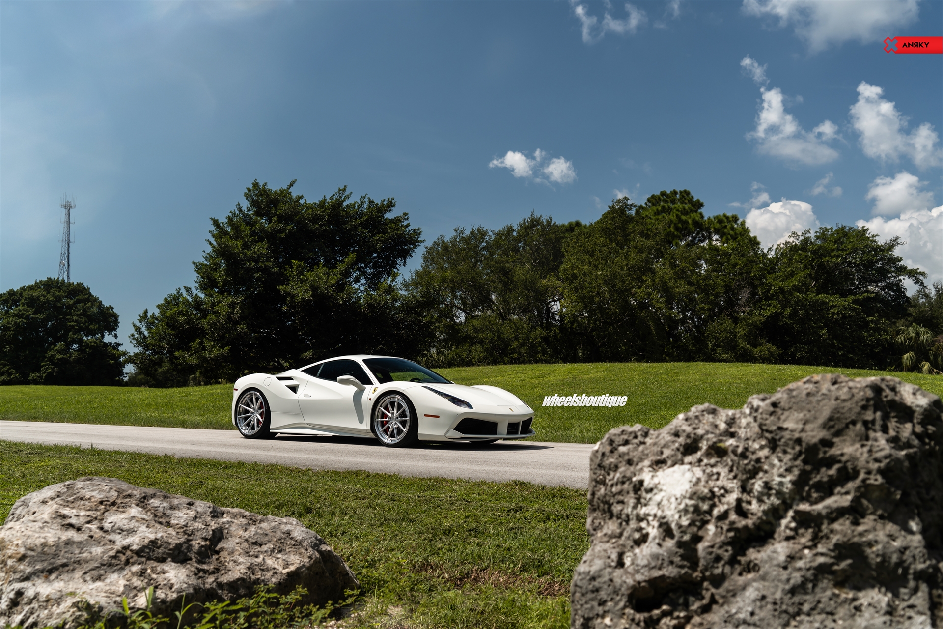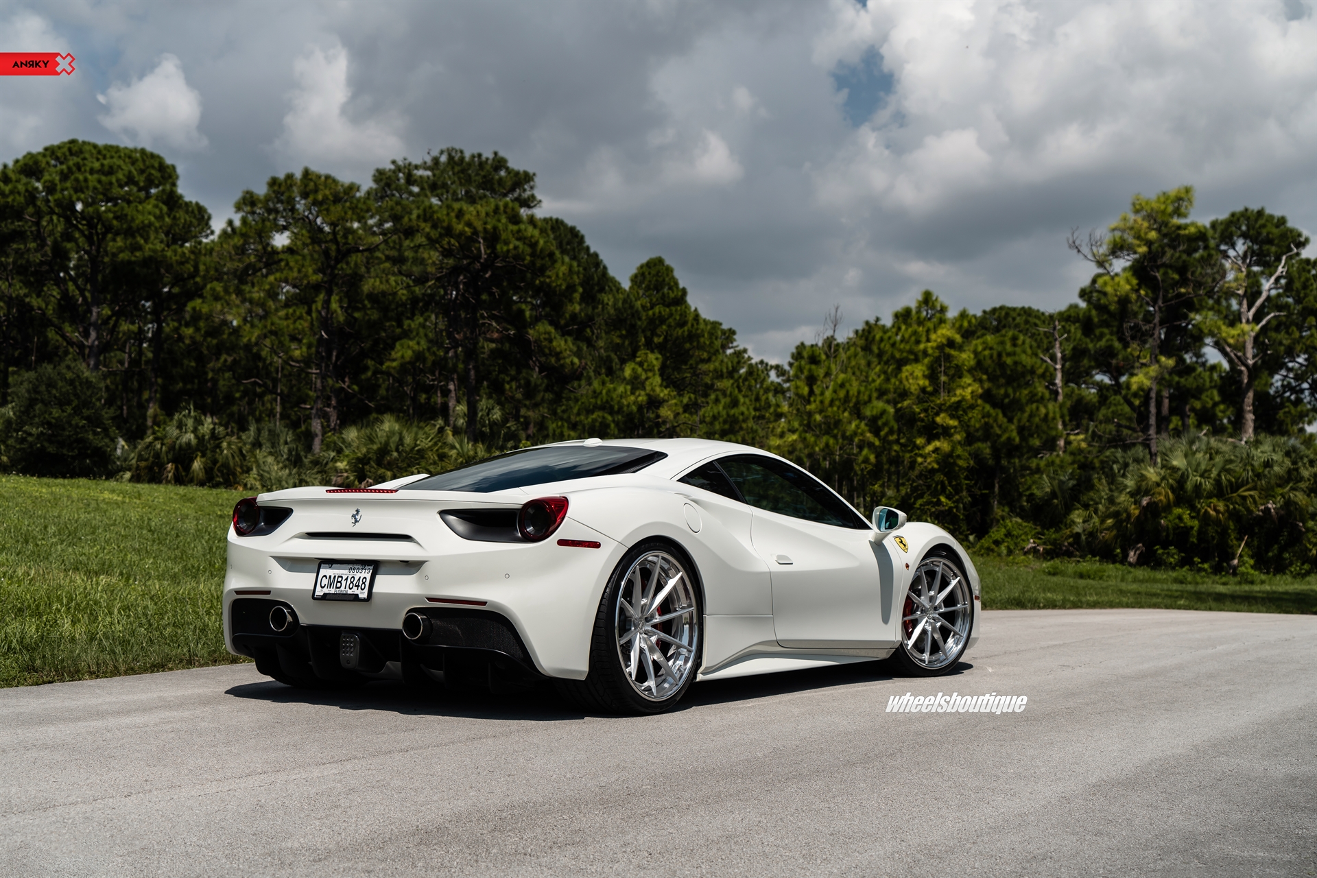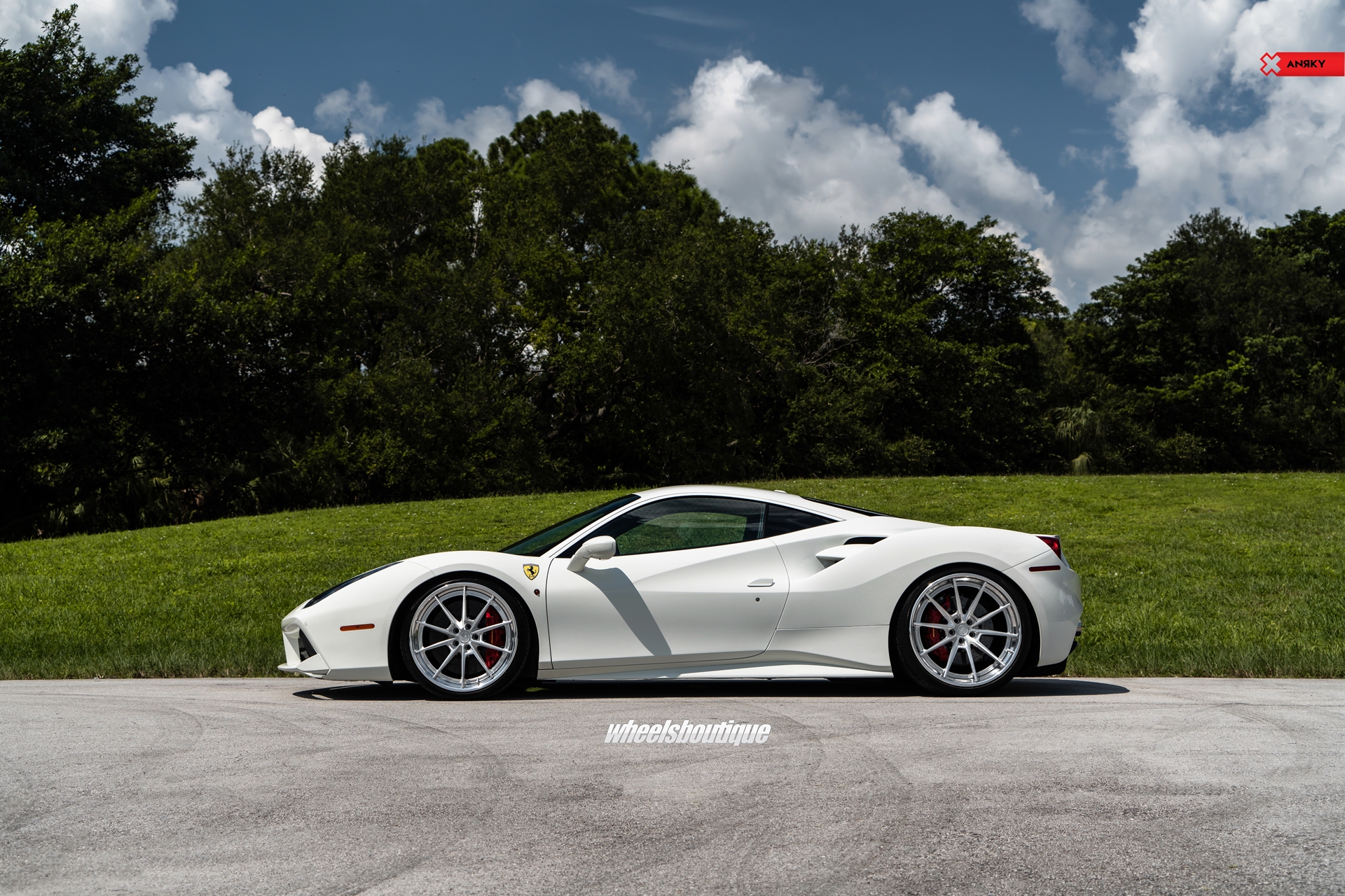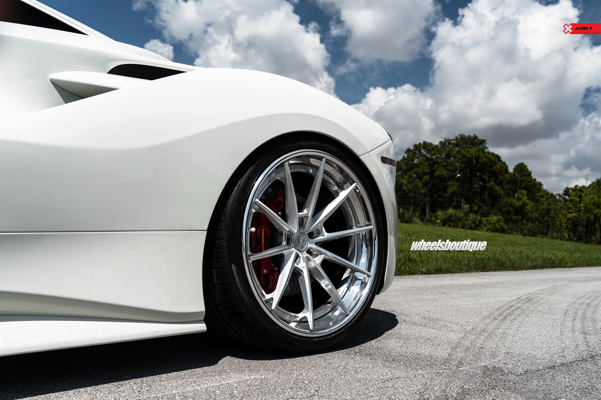 ANRKY Wheels Ferrari 488 GTB AN38 SeriesTHREE 21×9.5 22×12.5 Brushed Clear Center Mirror Polished Outer Gloss Black Inner Hidden ARP Hardware