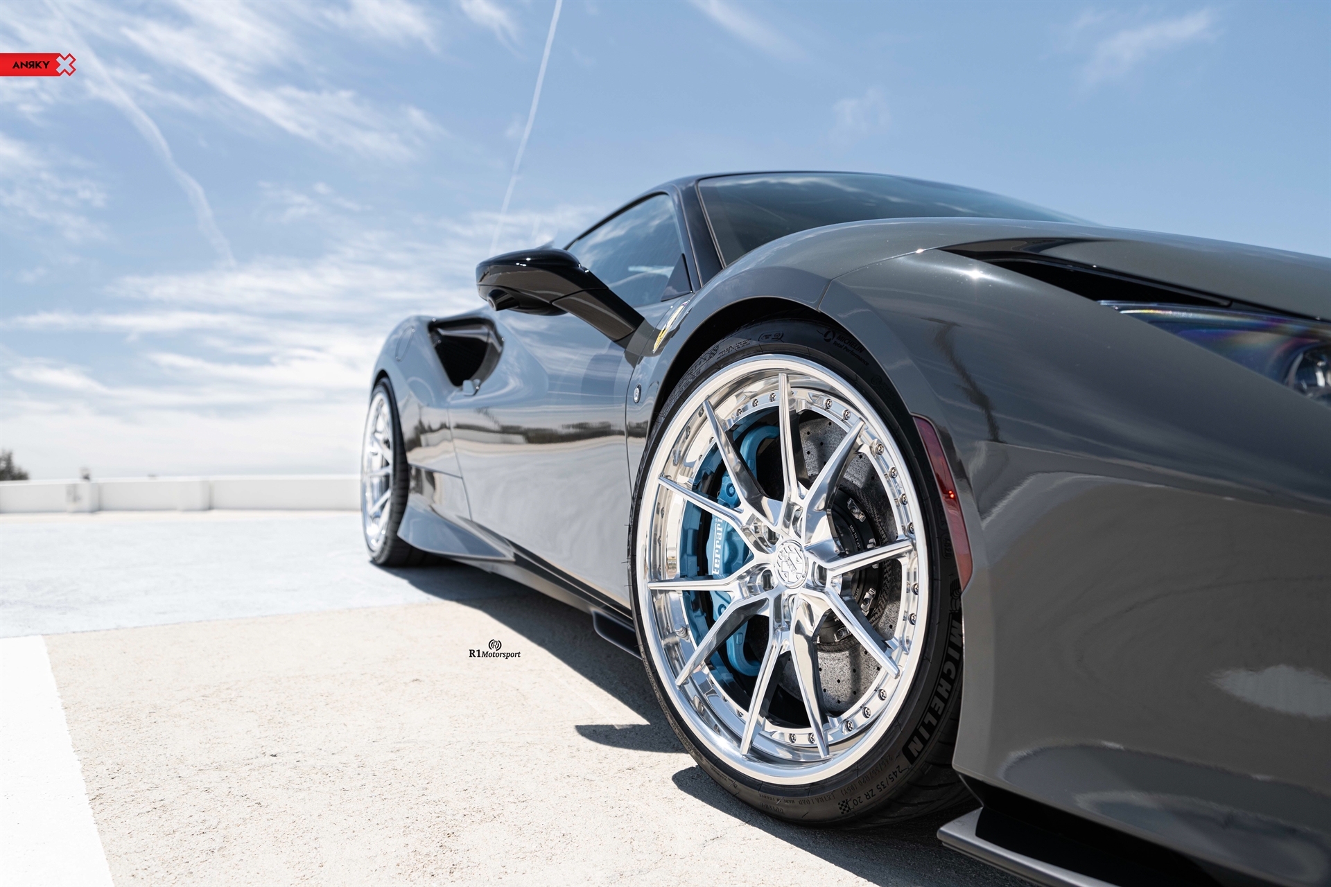 ANRKY WheelsFerrari F8 TributoAN32 SeriesTHREE20×921×13Brushed Face, Mirror Polished WindowsMirror Polished OuterMirror Polished InnerExposed ARP HardwareShop: R1 Motorsports