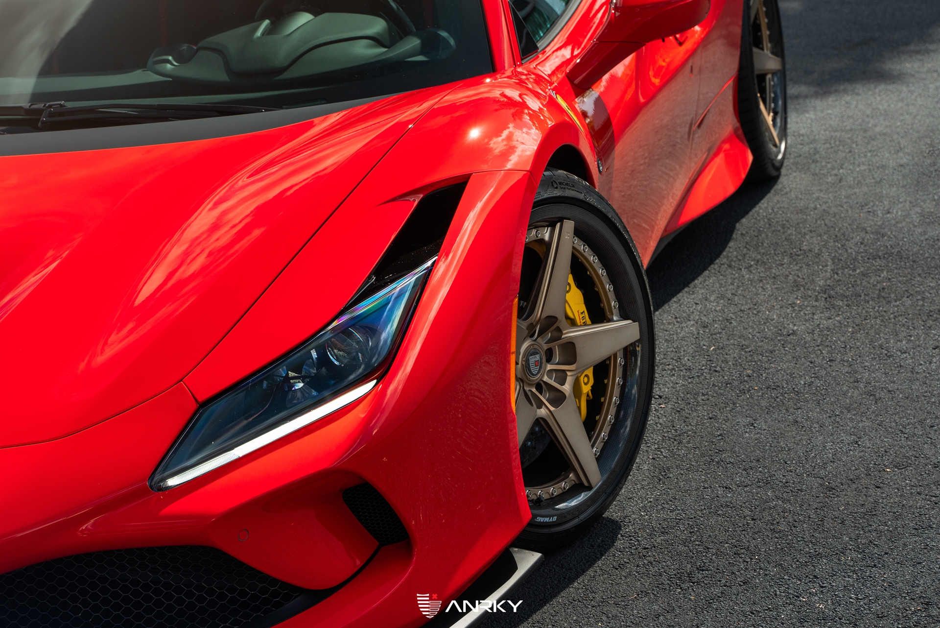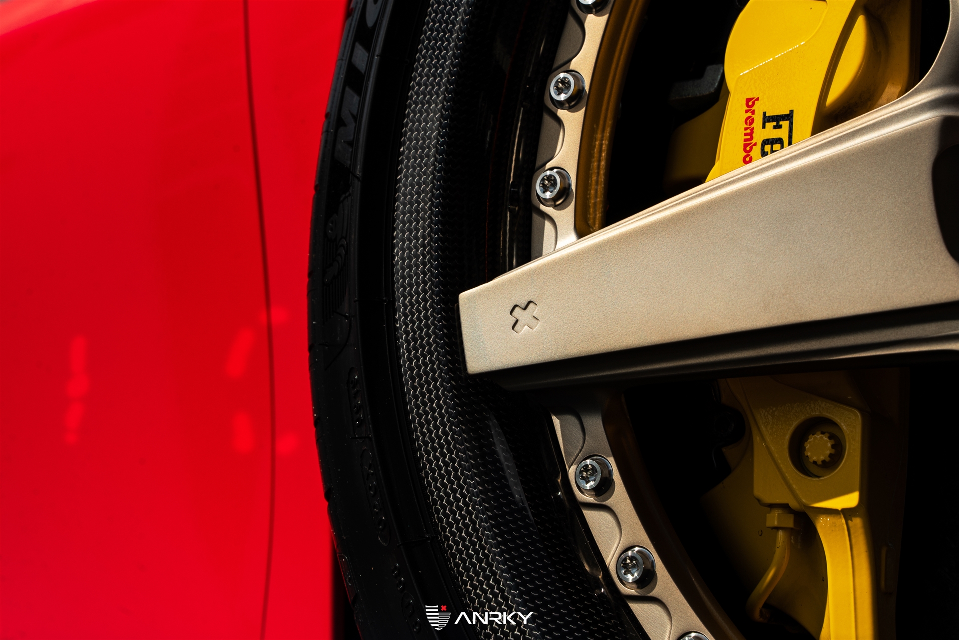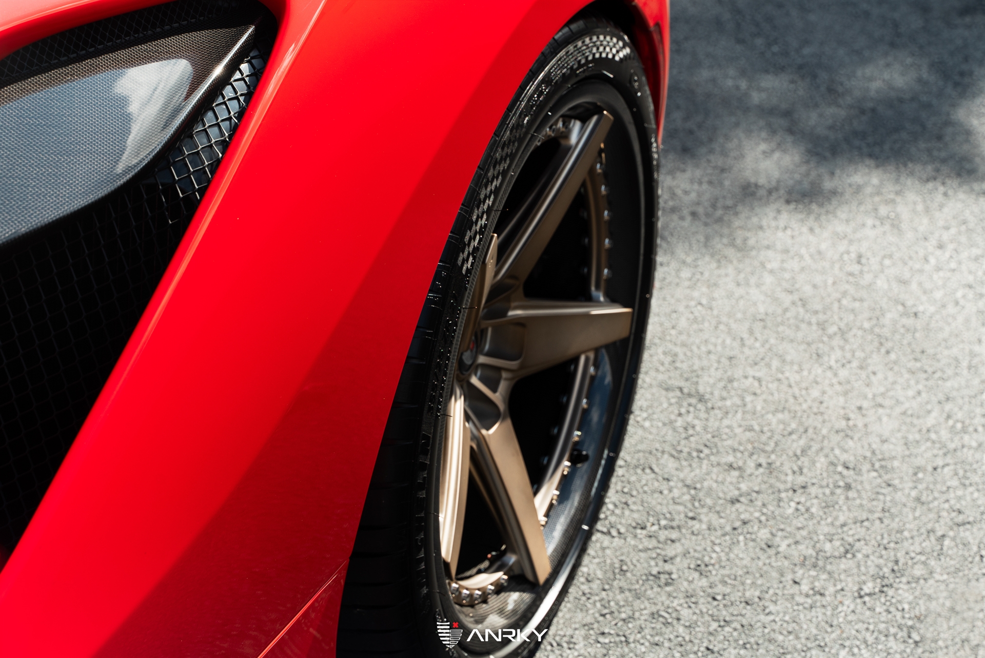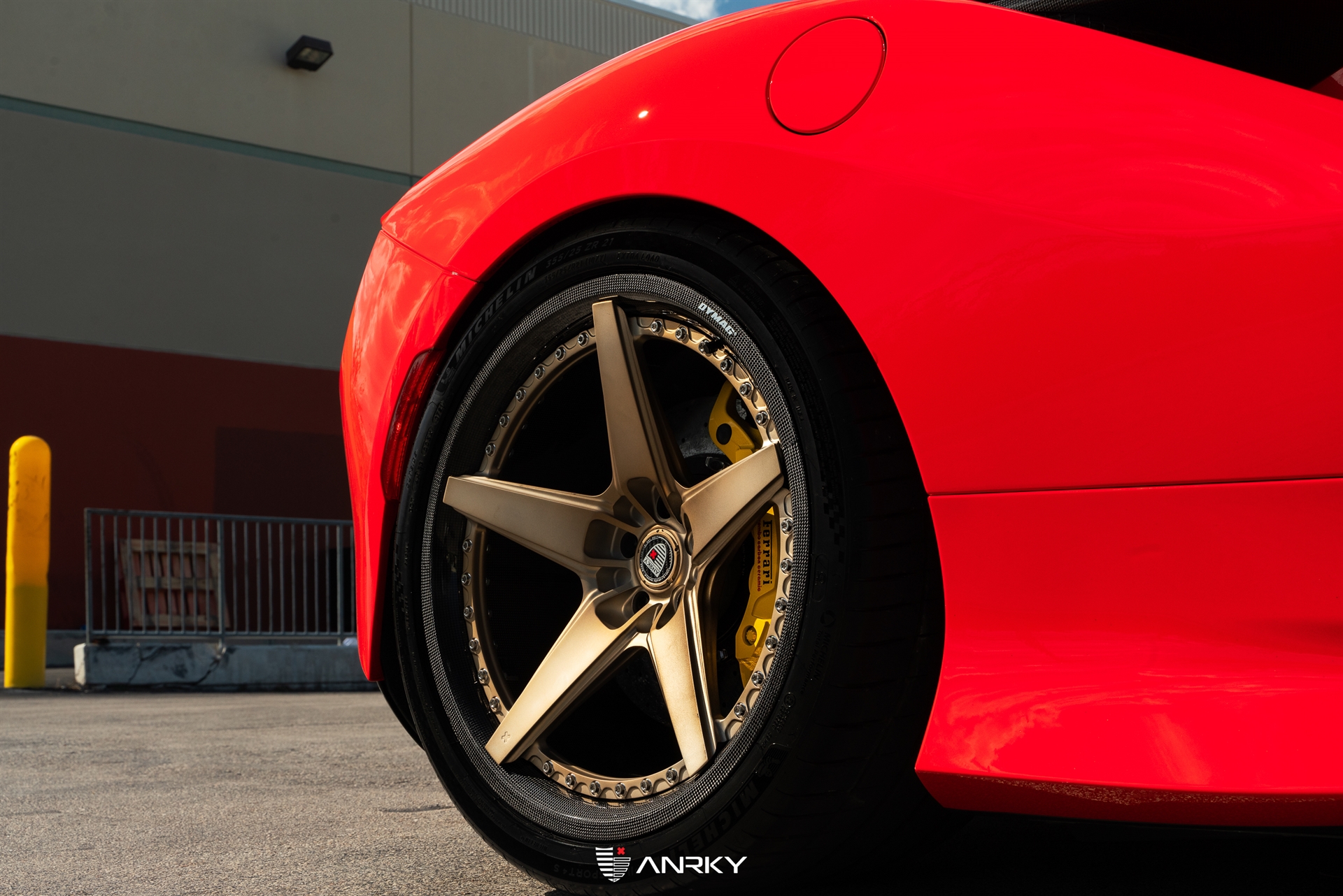 ANRKY WheelsFerrari F8 TributoRETROSeries CarbonModel: RS5.320×9.521×12.5Satin Mirror Polished Champagne CenterDymag Carbon Fiber BarrelTitanium HardwareCarbon ANRKY CapShop: Wheels Boutique