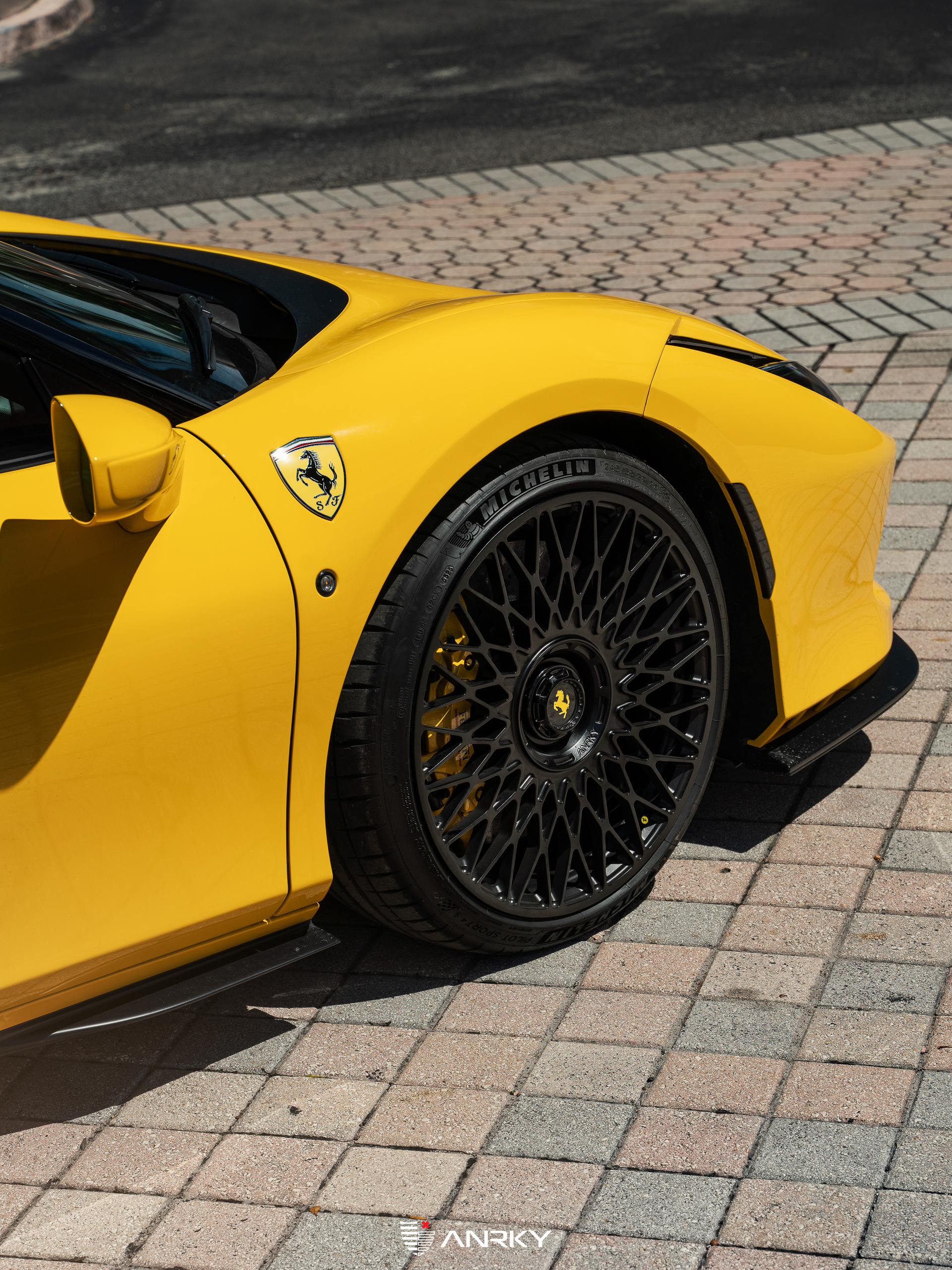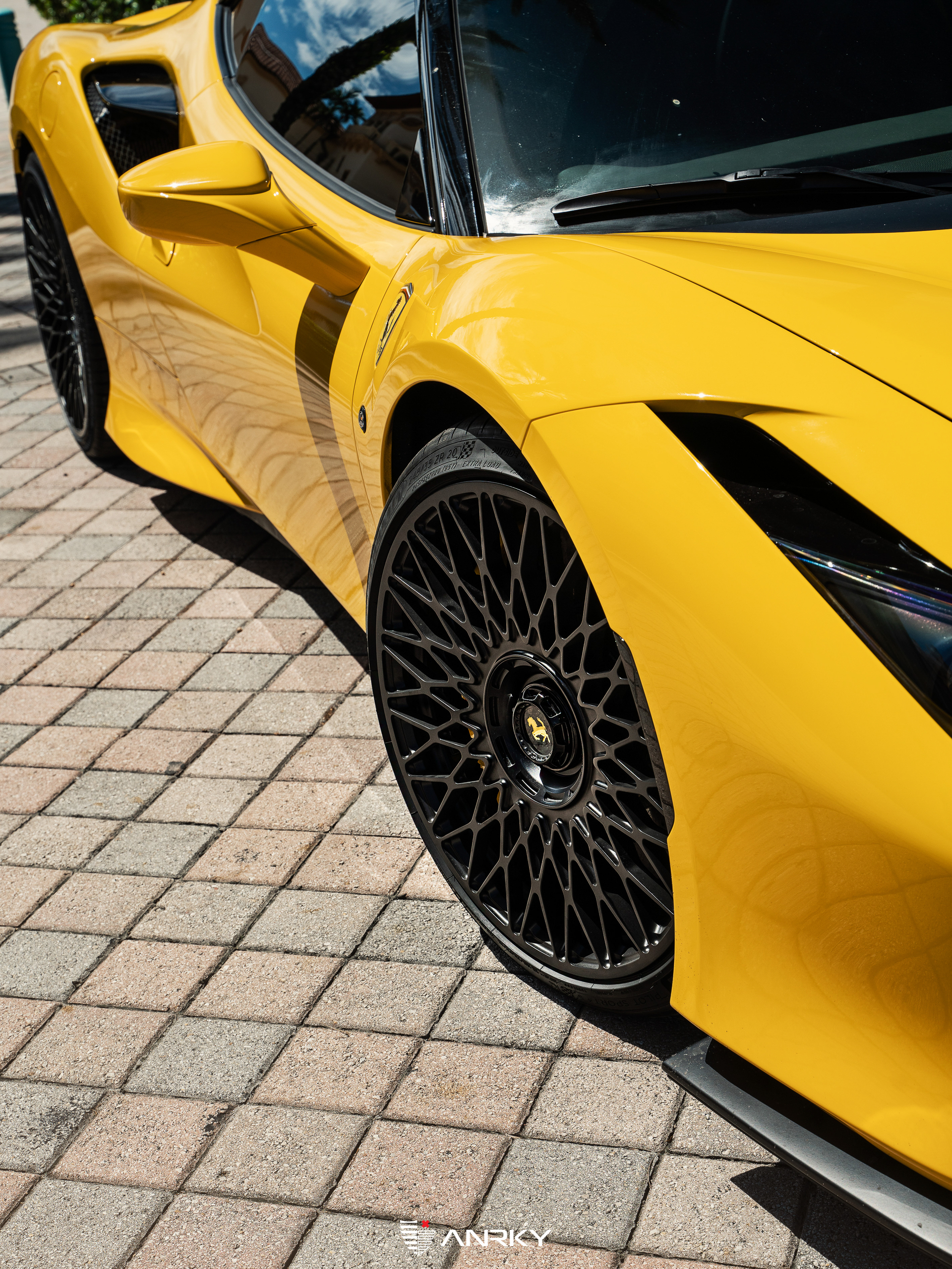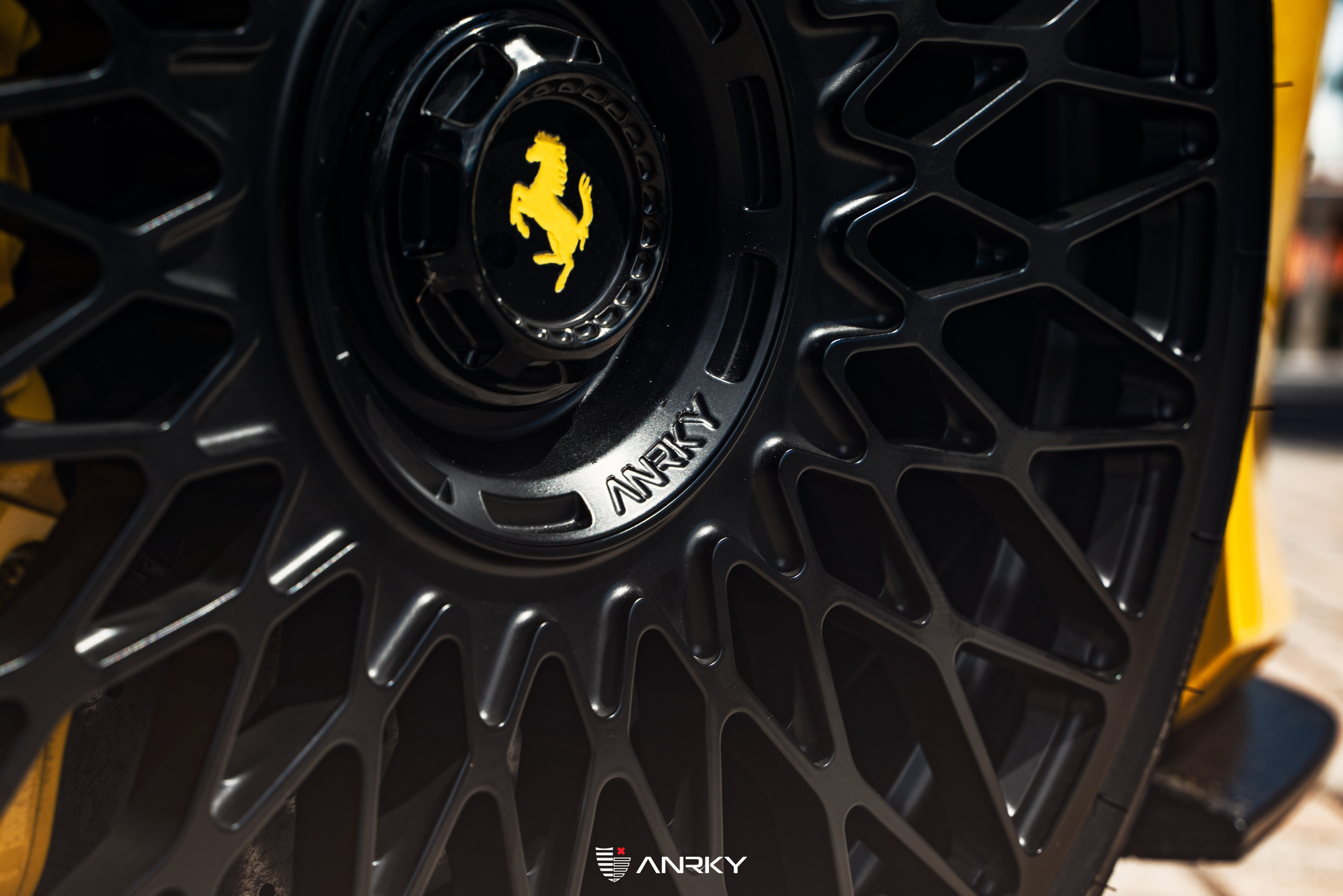 ANRKY WheelsFerrari F8 TributoRETROSeries MonoblockModel: RS7.120×9.521×13Satin BlackBillet PCD Cover + Centerlock CapCustom EngravingShop: Wheels Boutique