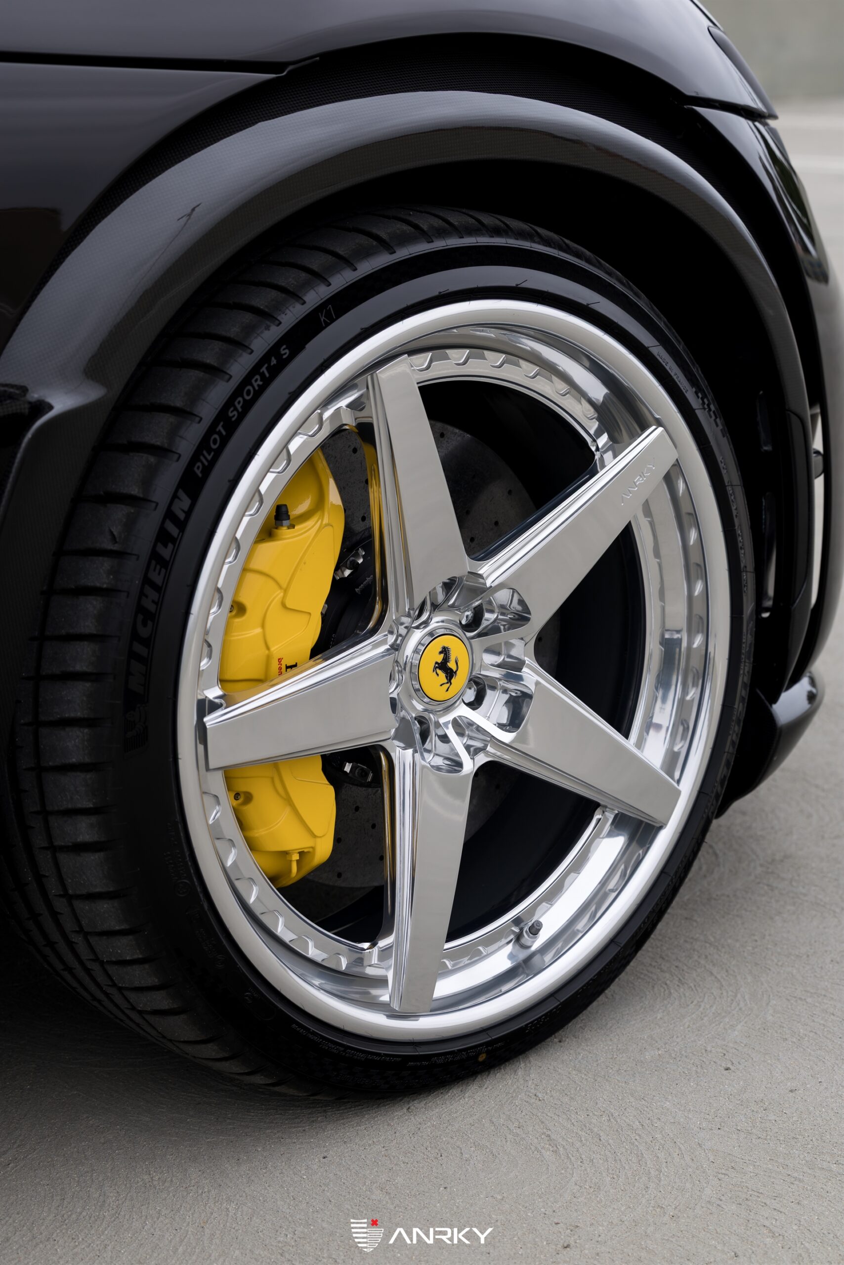 ANRKY WheelsFerrari PuroSangue RETROSeries 3 pieceModel: RS5.322×9.523×12Mirror Polished Clear CenterMirror Polished Clear OuterMirror Polished Clear InnerHidden ARP HardwareNovitec Lowering SpringsShop: Boden Autohaus