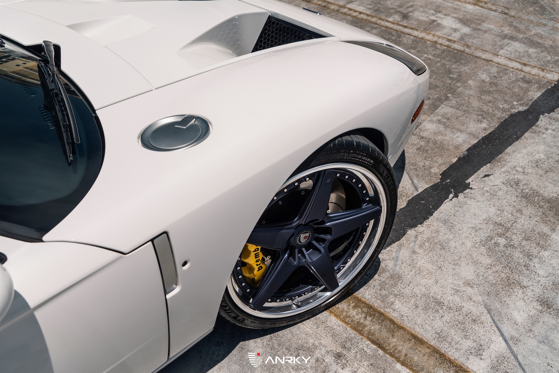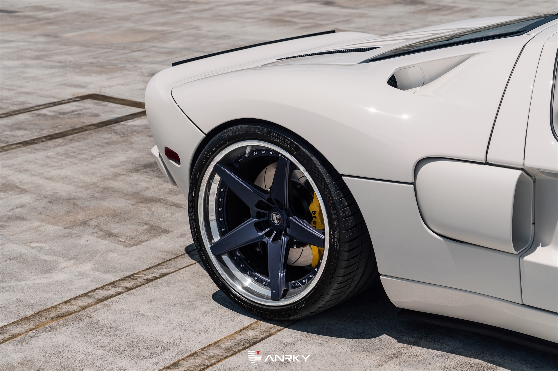 ANRKY Wheels2005 Ford GTRETROSeries ConcaveModel: RS5.320×1021×13Satin Space Blue CenterMirror Polished OuterMirror Polished InnerExposed HardwareBrembo BBKMichelin TiresShop: Wheels Boutique