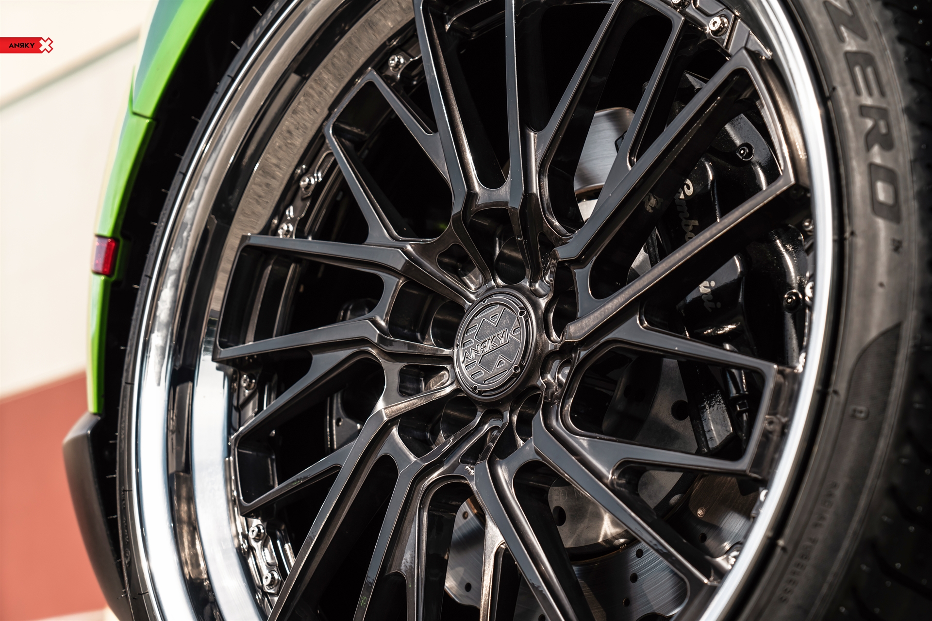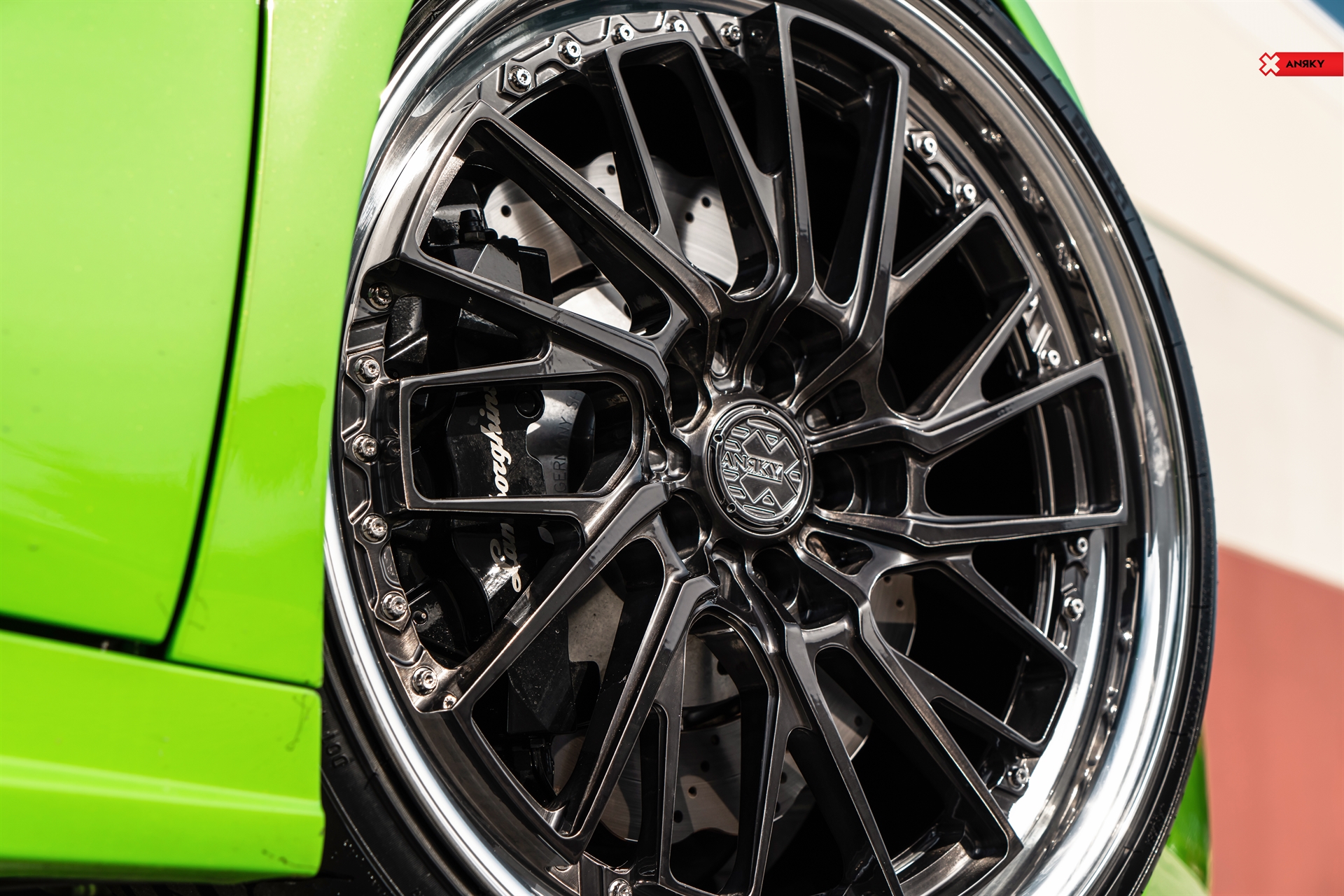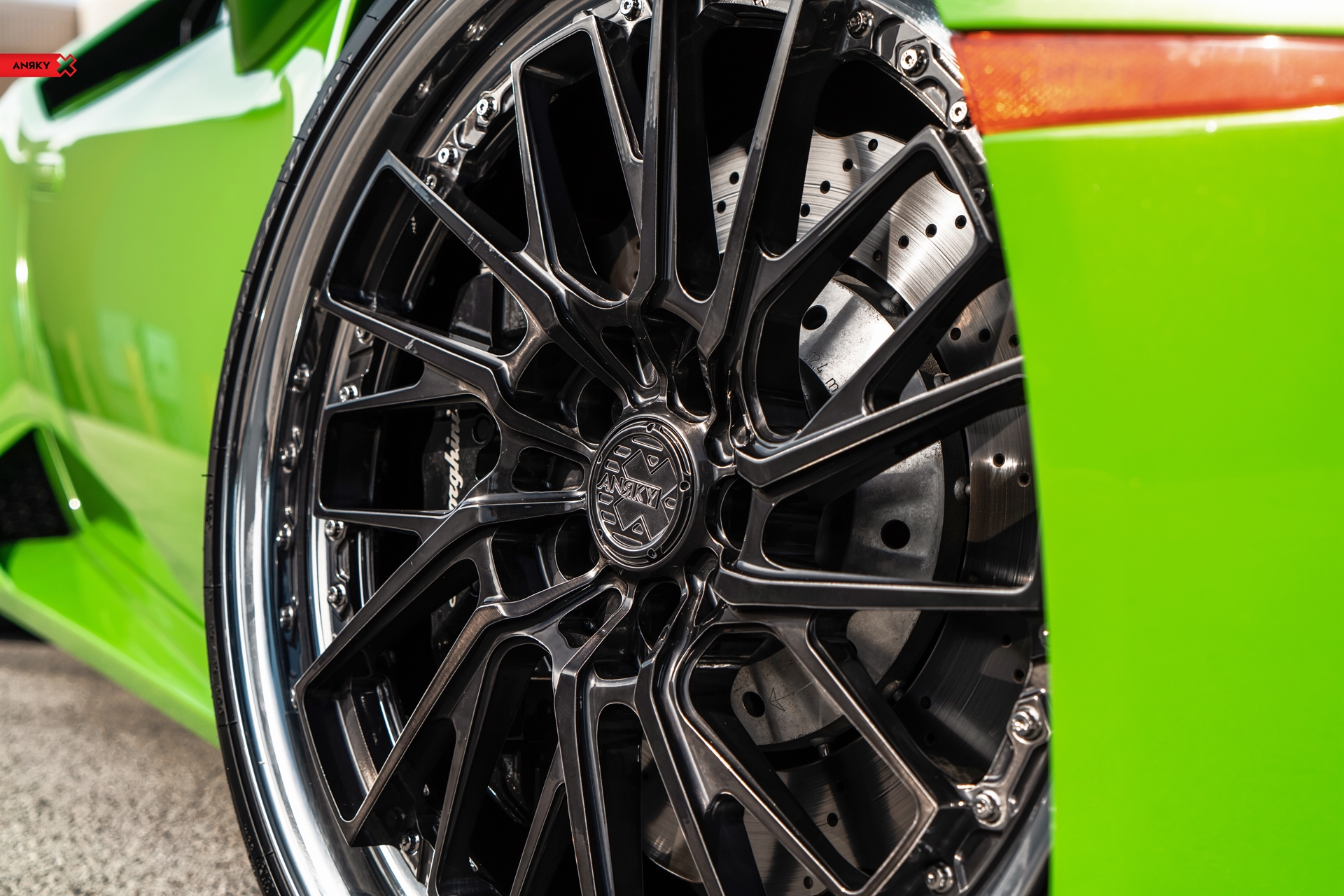 ANRKY Wheels Lamborghini Huracan RETROseries RS3 20×9 21×12.5 Brushed Black Center Mirror Polished Outer Gloss Black Inner Exposed ARP Hardware