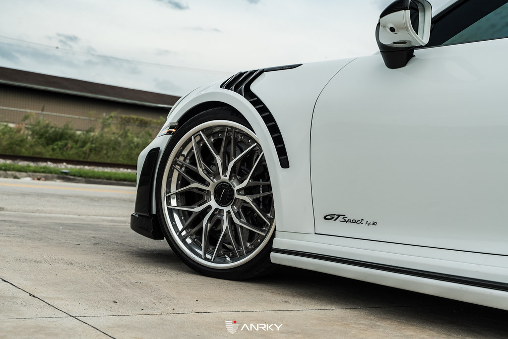 ANRKY WheelsTechART GTsportPorsche 992TT-SX-Series S3-X121×9.522×12.5Brushed Face + Brushed Gunmetal WindowsMirror Polished Clear OuterGloss Black InnerExposed Titanium HardwareShop: Wheels Boutique
